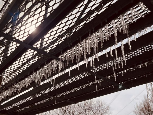 足場に氷柱。