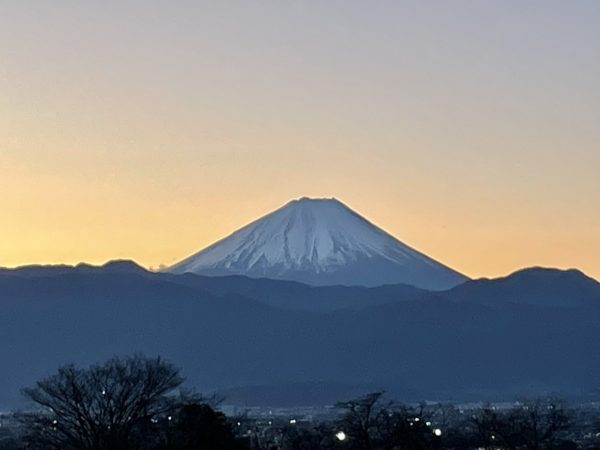 初日の出が昇り、その光に照らされて富士山がゆっくりと浮かび上がってきました。