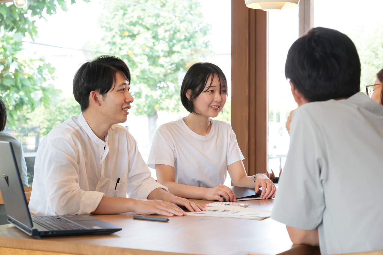 私たちの家づくりは、ブランドへの共感をいただいたお客様からのお問い合わせが起点となる「反響営業」スタイルです。そのため、新規開拓に時間を費やすことなく、一組一組のお客様と深く、濃密な時間を過ごすことができます。一つひとつの家族と真剣に向き合い、理想の「お家」をゼロから創り上げる経験を早い段階から数多く積めるため、他の環境とは比較にならないスピードで、建築家として、そして一人の人間として成長を実感する事ができます。