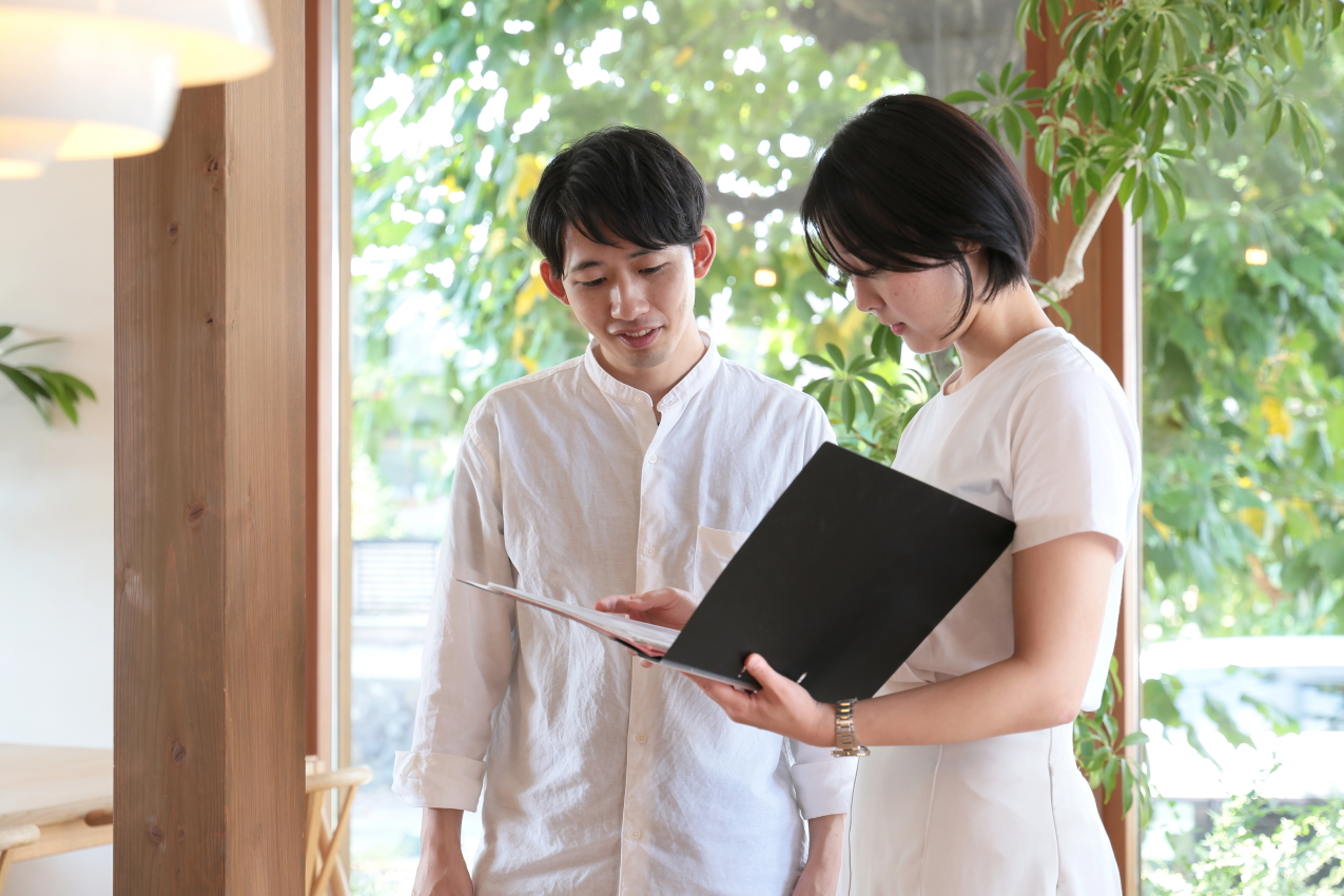 建築予定地のポテンシャルを最大限に引き出すため、現地に赴き、土地の形状、日当たりや風の流れ、周辺環境などを丁寧に確認します。同時に、役所で関連法規や条例を調査し、その土地に最適な建築が可能かを確認します。